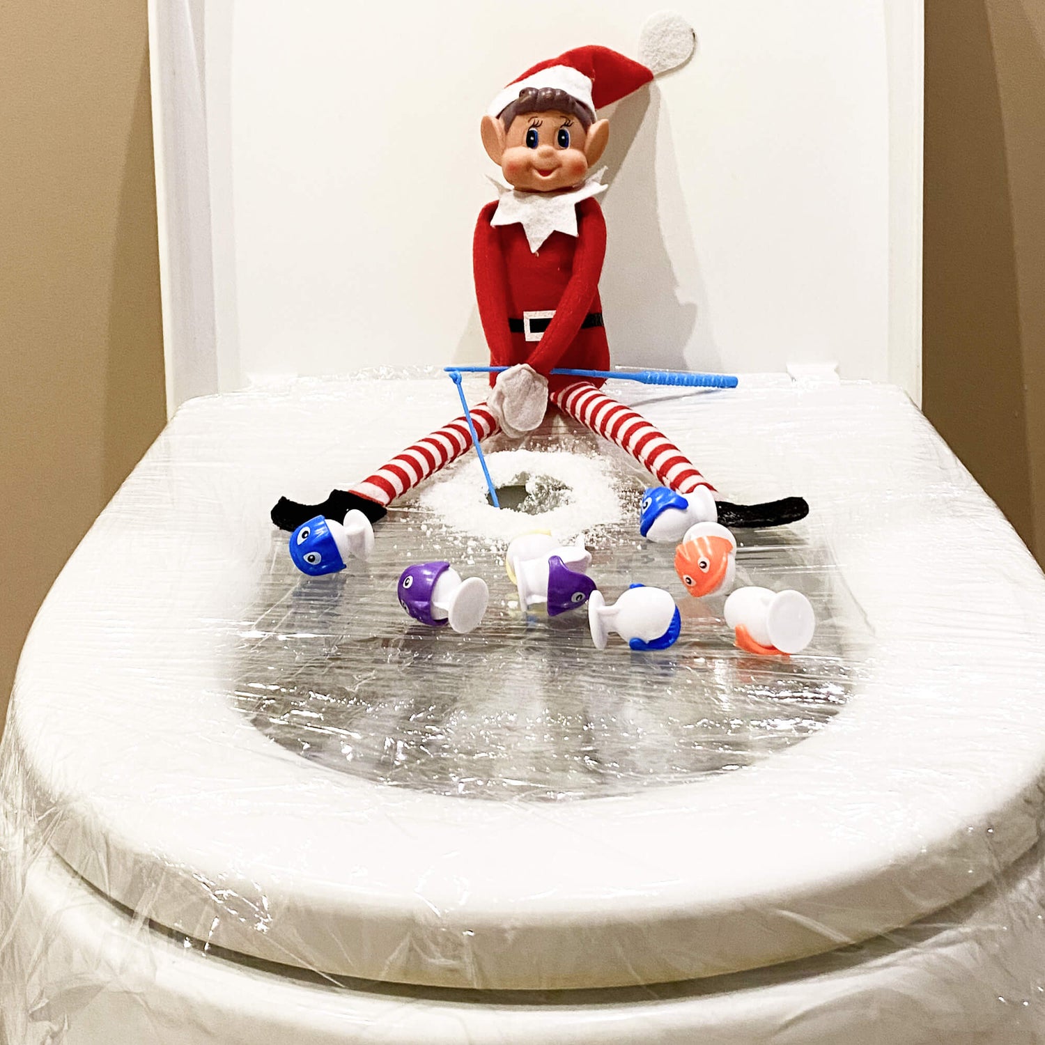 Elfai puikiai gaudo žuveles, o ypač mėgsta poledinę žūklę! Išmėginkite tai tualete. Dangtį apgaubkite maistine plėvele, pradurkite skylę. Ją apiberkite druska (ji imituos ledą). Iš pagaliuko padarykite meškerę ir pridėkite žaislinių žuvelių.