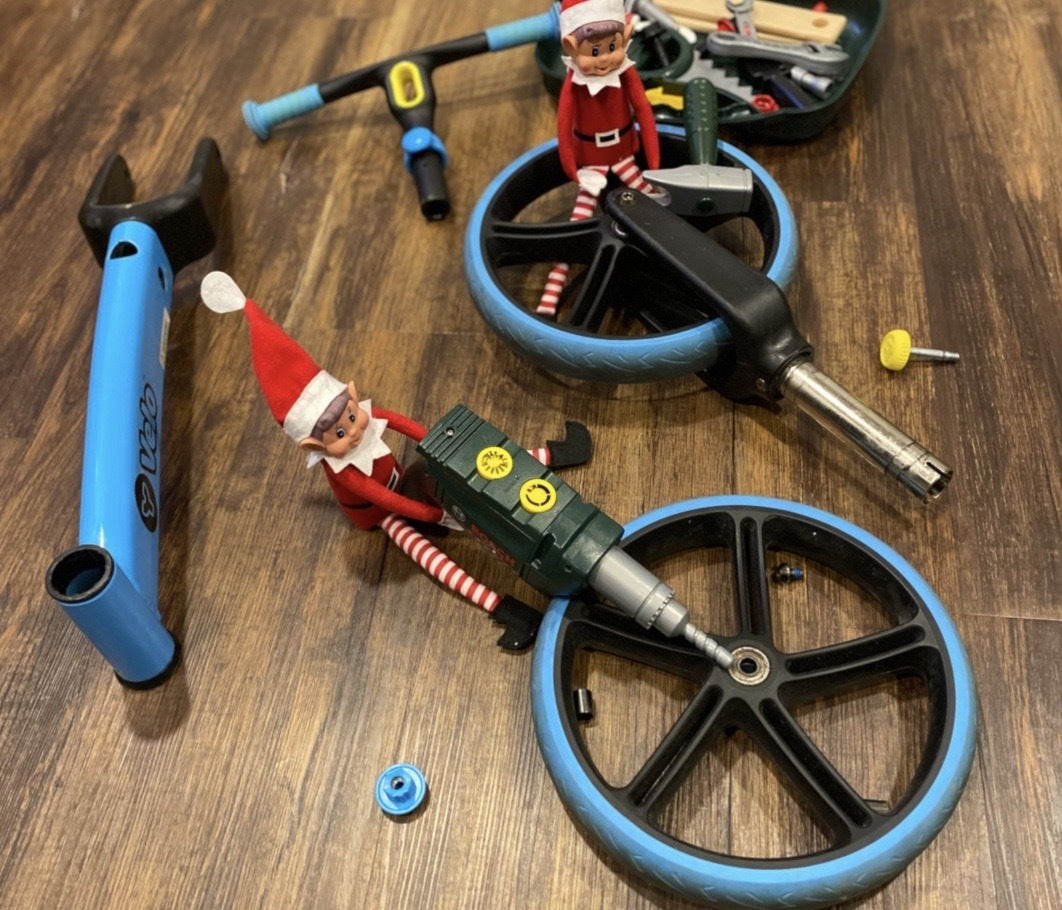 Naktį Elfai nusprendė dviratuką paruošti žiemai ir ateinančiam naujam sezonui. Visą išardė, suveržė, bet dėja surinkti jau nebepavyko 😆. Šiai išdaigai galite panaudoti dviratuką, paspirtuką ar riedučius.