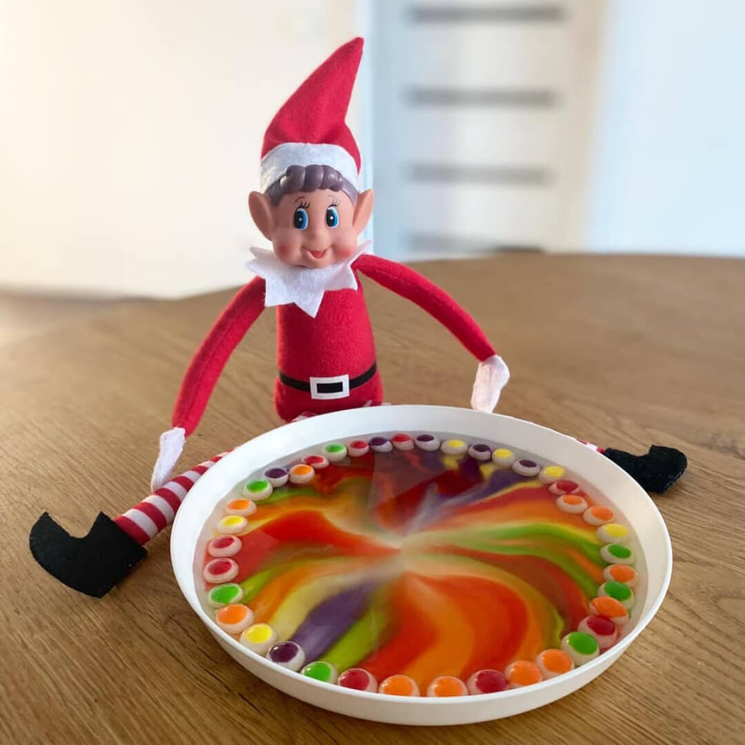 Šiai Elfo išdaigai prireiks ,,Skittles" saldainiukų ir karšto vandens. Užpilkite saldaines karštu vandeniu. Palaukite kelias minutes ir pamatysite nuostabią vaivorykštę :)