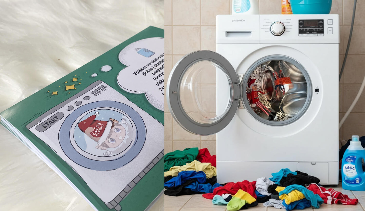 Elfas pramogauja atrakcione. Prilipinkite jį skalbimo mašinos viduje. O aplink jau tebūnie Elfiška betvarkė...