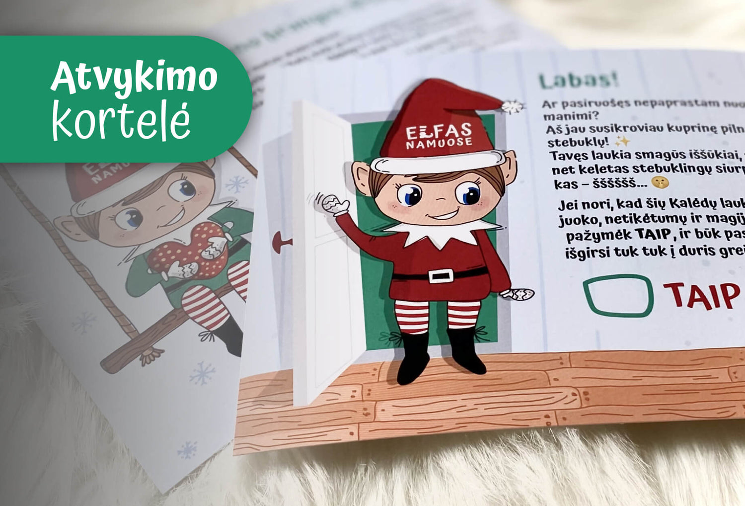 Padėkite šią Elfo atvykimo kortelę vaikui ir leiskite jam nuspręsti – ar išdykėlis Elfas turėtų atvykti, ar ne? ✨Kortelę reikia padėti prieš gruodžio 01d, t.y. lapkričio 30d.